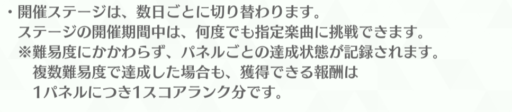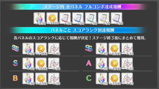 | 曲名 | 色 | 難易度(NORMAL,PRO,MASTER) | SSSに必要なスコア(万) |