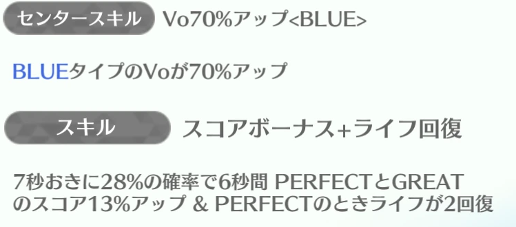 全体的に小粒。センターの金村美玖以外は少し厳しい性能になっている。金村美玖はセンターらしく強スキルになっていてステータスも特化になっているのでうまく編成すれば活躍できそう。