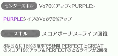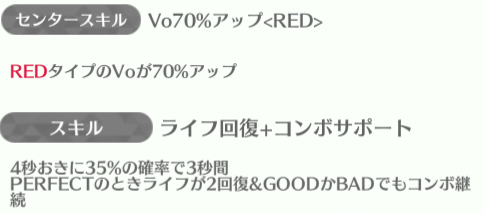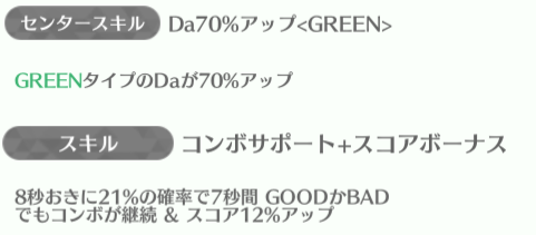 現役メンバーはライフ系のスキルが多いのでライフが高いメンバーが多め。センタースキルも卒業生の小林由依が紫のVoPeアップ、渡邉理佐が緑の全アップとなっていて現役メンバーは通常のものしかないのが残念。スキルは田村保乃が優秀になっているので青の戦力アップになるでしょう。
