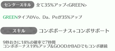 | ID | 名称 | アイコン | スキル期待値 | センタースキル/スキル | Vo | Da | Pe | ライフ | 運 | 備考 |