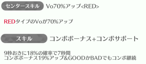 全アップは二人いるが現役メンバーではスキルがスコアボーナスがおらず、コンボボーナスも倍率が低いので実用的ではないのが残念。