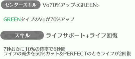 | ID | 名称 | アイコン | スキル期待値 | センタースキル/スキル | Vo | Da | Pe | ライフ | 運 | 備考 |