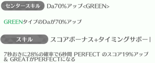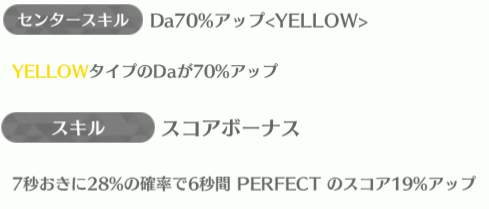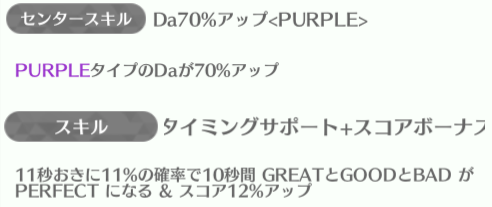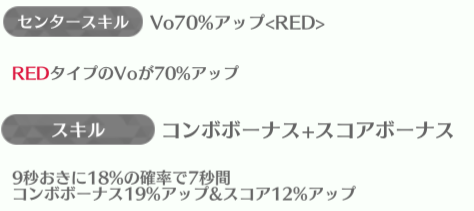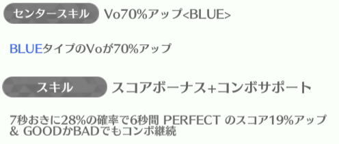 | ID | 名称 | アイコン | スキル期待値 | センタースキル/スキル | Vo | Da | Pe | ライフ | 運 | 備考 |