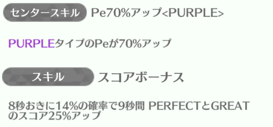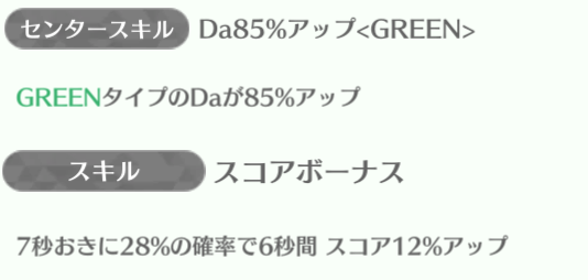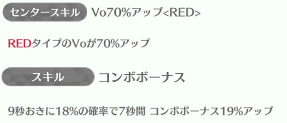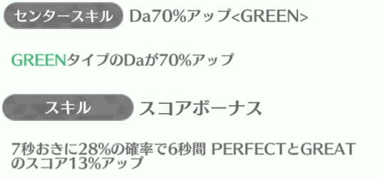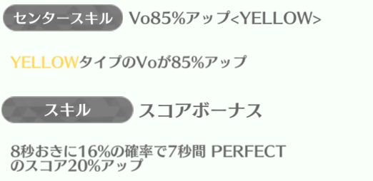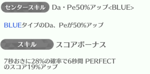 | ID | 名称 | アイコン | スキル期待値 | センタースキル/スキル | Vo | Da | Pe | ライフ | 運 | 備考 |