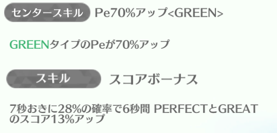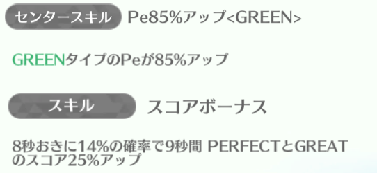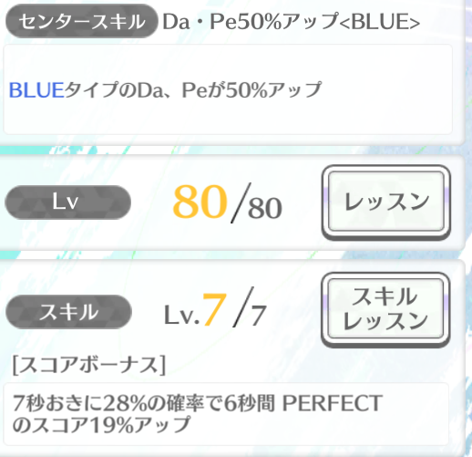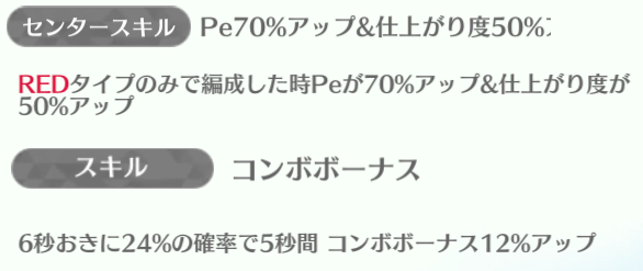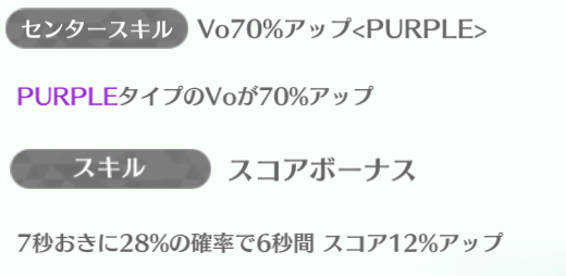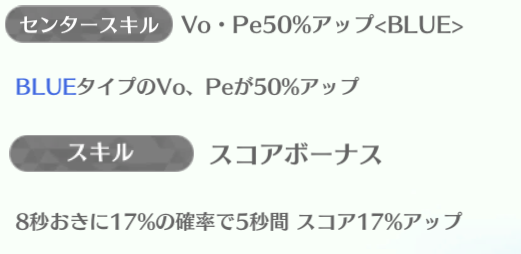 | ID | 名称 | アイコン | スキル期待値 | センタースキル/スキル | Vo | Da | Pe | ライフ | 運 | 備考 |