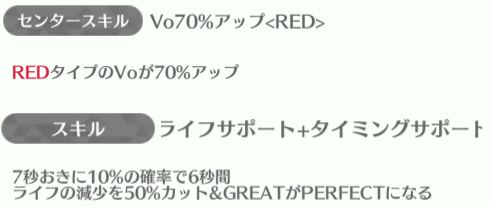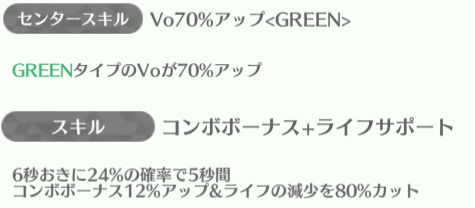 | ID | 名称 | アイコン | スキル期待値 | センタースキル/スキル | Vo | Da | Pe | ライフ | 運 | 備考 |