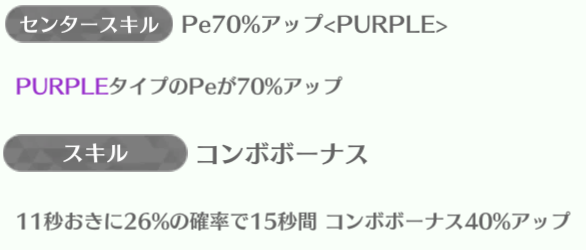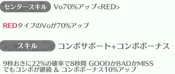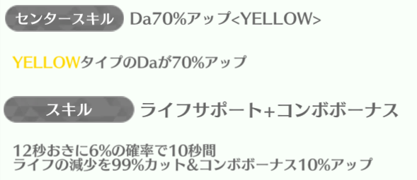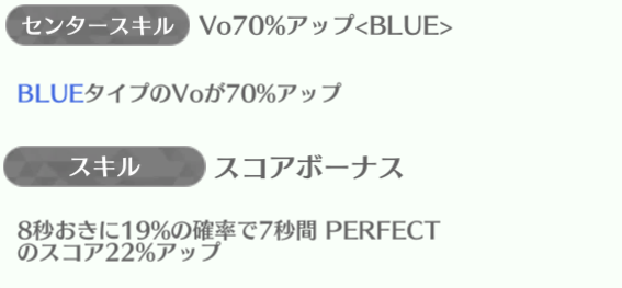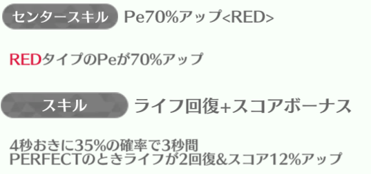 | ID | 名称 | アイコン | スキル期待値 | センタースキル/スキル | Vo | Da | Pe | ライフ | 運 | 備考 |
