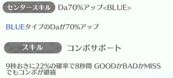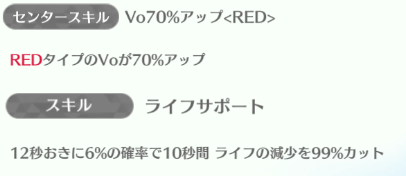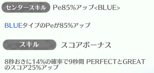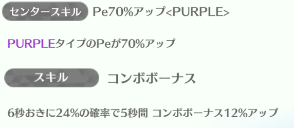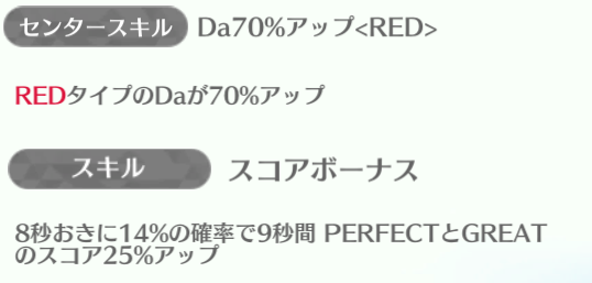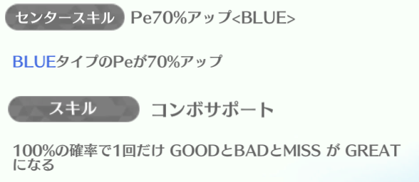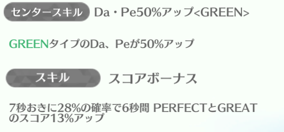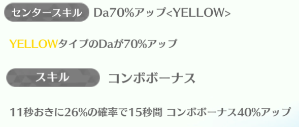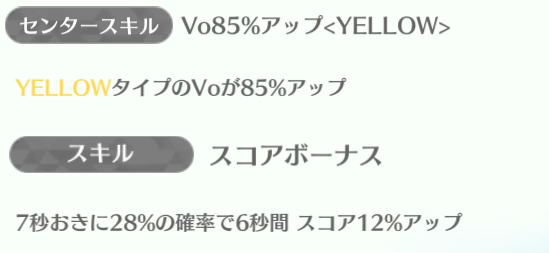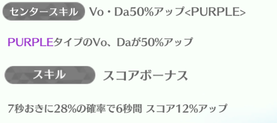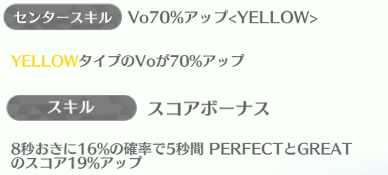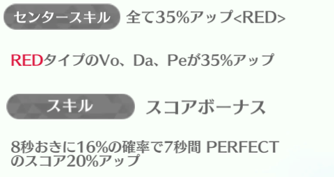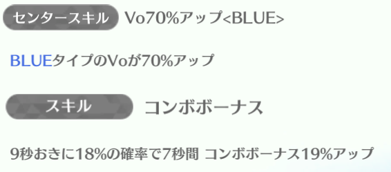 | ID | 名称 | アイコン | センタースキル/スキル | スキル期待値 | Vo | Da | Pe | ライフ | 運 | 備考 |