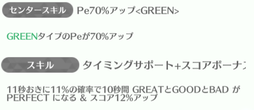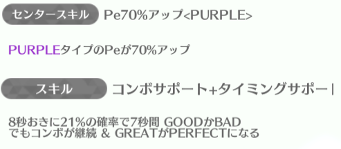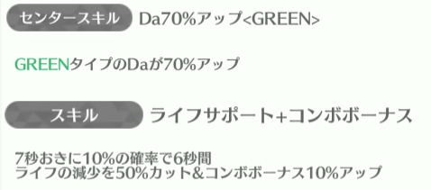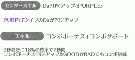 | ID | 名称 | アイコン | スキル期待値 | センタースキル/スキル | Vo | Da | Pe | ライフ | 運 | 備考 |