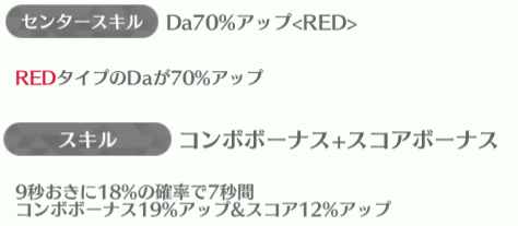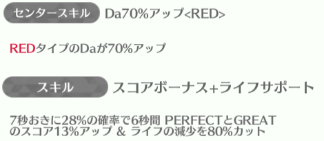大園玲・幸阪茉里乃・藤吉夏鈴が強スキルを持っている。特に幸阪茉里乃は現時点では最強レベルのスキルでステータスも特化型になっているので、ステータス面の育成としっかり編成ができれば活躍できるでしょう。センターの森田ひかるはスキルは最強レベルとは言えないがセンタースキルが全アップなのでこちらも編成をしっかりできれば輝けるでしょう。