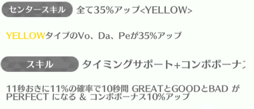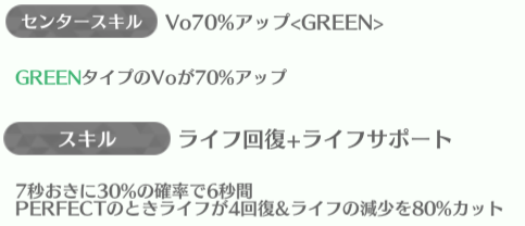 | ID | 名称 | アイコン | スキル期待値 | センタースキル/スキル | Vo | Da | Pe | ライフ | 運 | 備考 |