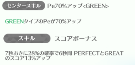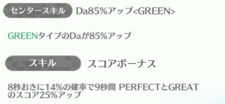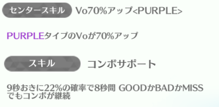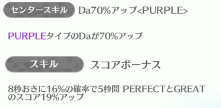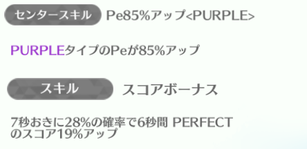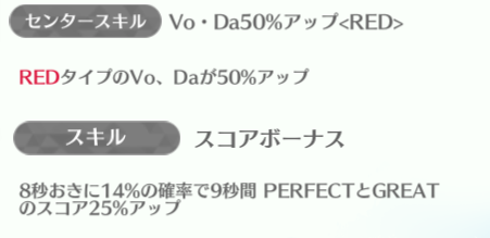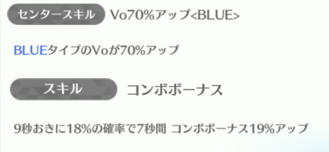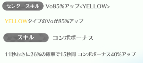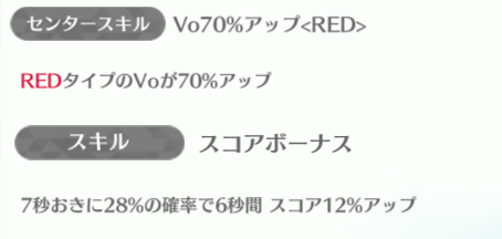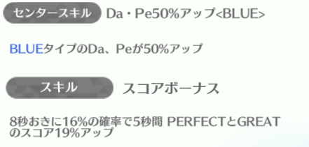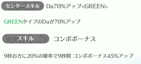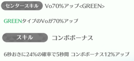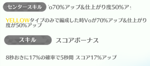 | ID | 名称 | タイプ | スキル期待値 | センタースキル/スキル | Vo | Da | Pe | ライフ | 運 | 備考 |