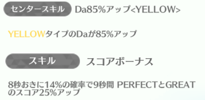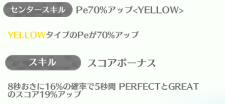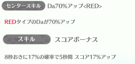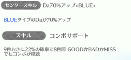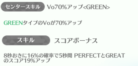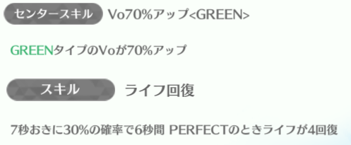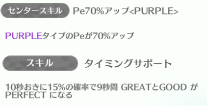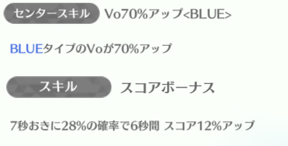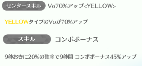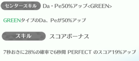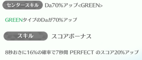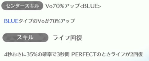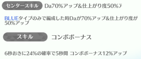 | ID | 名称 | タイプ | スキル期待値 | センタースキル/スキル | Vo | Da | Pe | ライフ | 運 | 備考 |